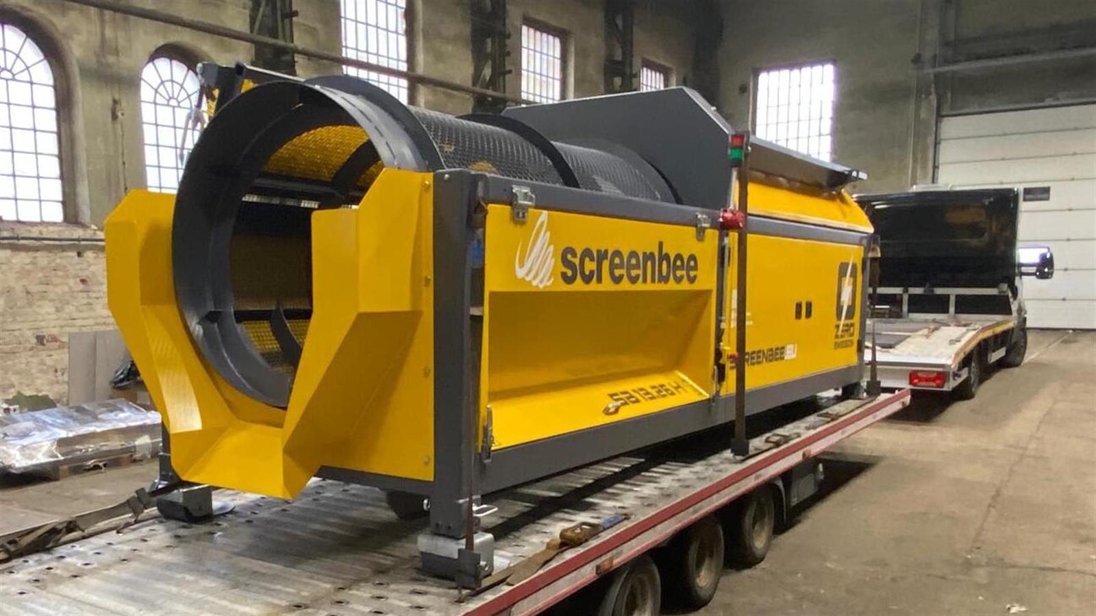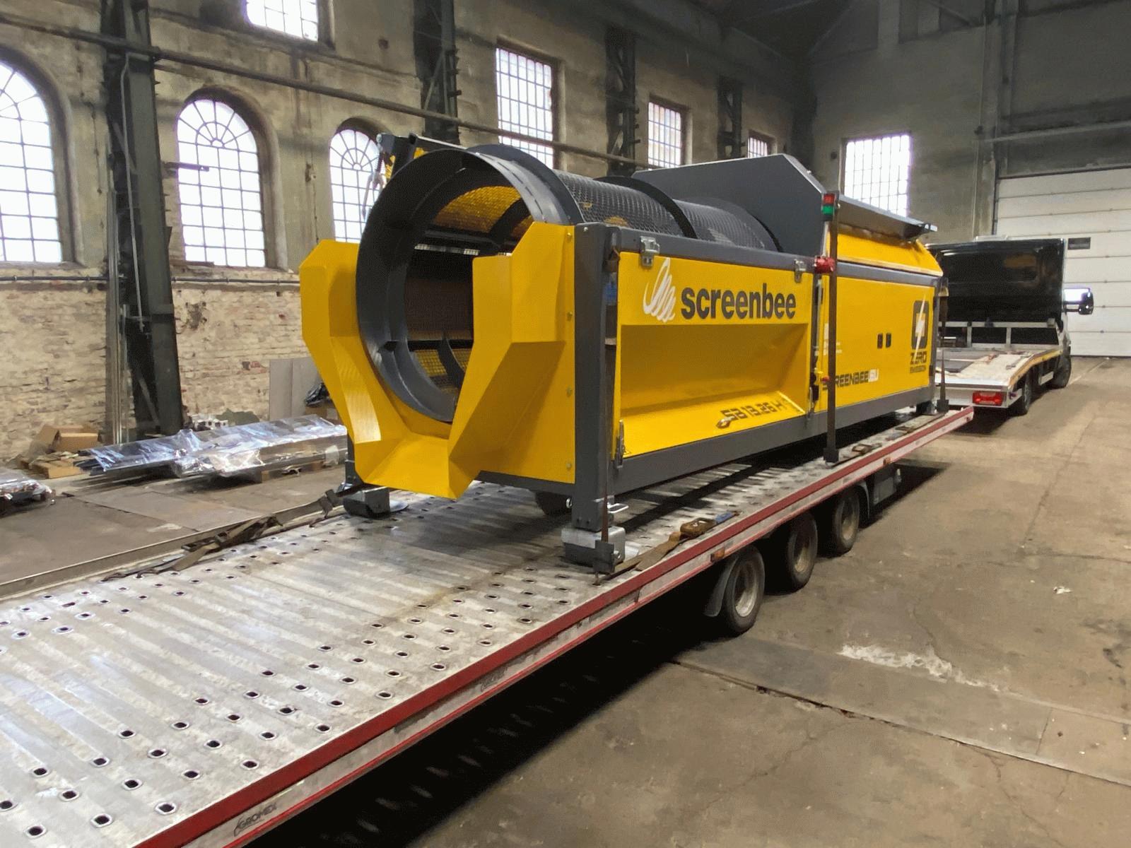 Criba móvil compacta con sistema de gancho (hook lift), diseñada para operación automática y alto rendimiento en cribado de materiales.